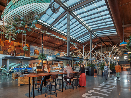 Projects such as The Glades in Boca Raton, Florida, and the Skydeck in Del Mar, California, exemplify this shift. The Glades, a proposed 200,000-square-foot luxury retail and food-and-beverage development, fully embraces the multifunctional, experience-driven model Gen Z craves. From a restaurant row connected by a meandering landscaped pathway to a central green with a stage designed for events, the project is intentionally layered. Gastronomic dining experiences at projects like the Sky Deck offer quick, casual food and drink options allowing younger less monetarily established folks to participate in the fun. Each dining pocket feels transportive, with curated lighting, overhead elements, and signage that clearly distinguish one experience from the next.